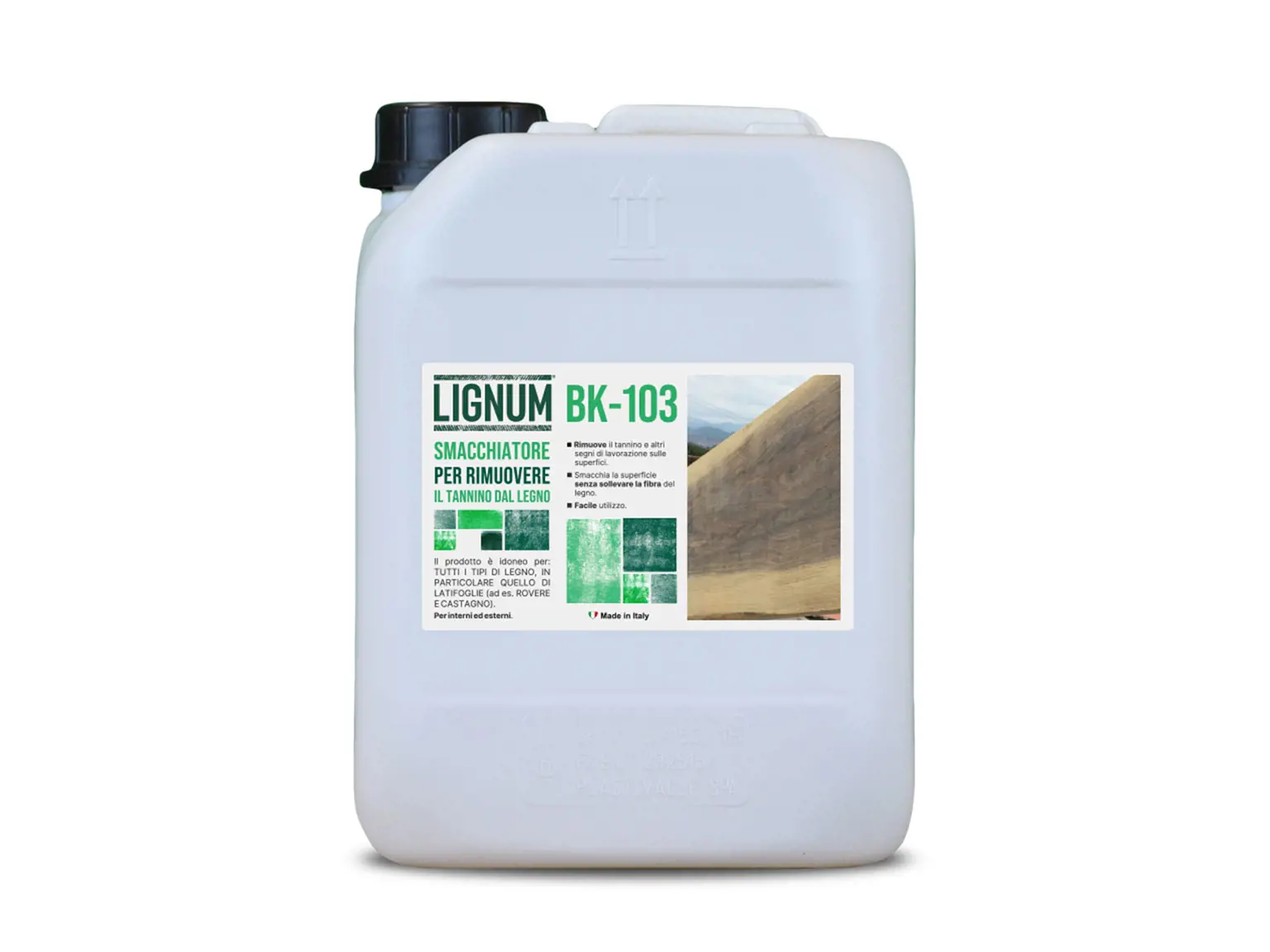 Lignum BK-103 ist ein Produkt auf Wasserbasis zur Entfernung von Gerbsäureflecken und anderen Bearbeitungsspuren auf Holz, insbesondere Eiche und Kastanie.